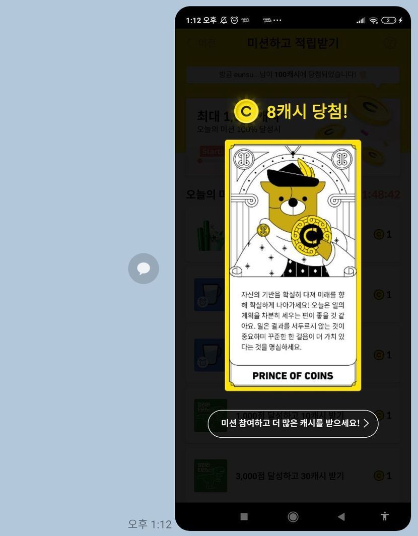 캐시피드 캐시슬라이드 미션보드 성공