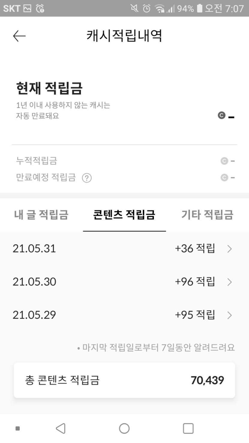 21.05.31 227 읽음 캐슬스텝업 캐시피드 오류😭😭😭 슈퍼매직0826 구독하기 6 8 콘텐츠의 수익 5 7시에 캐슬 바로적립 100캐시 적립도 못했네요오류 없는 캐시피드 되길 바래요😭😭 8 0 / 300 입력