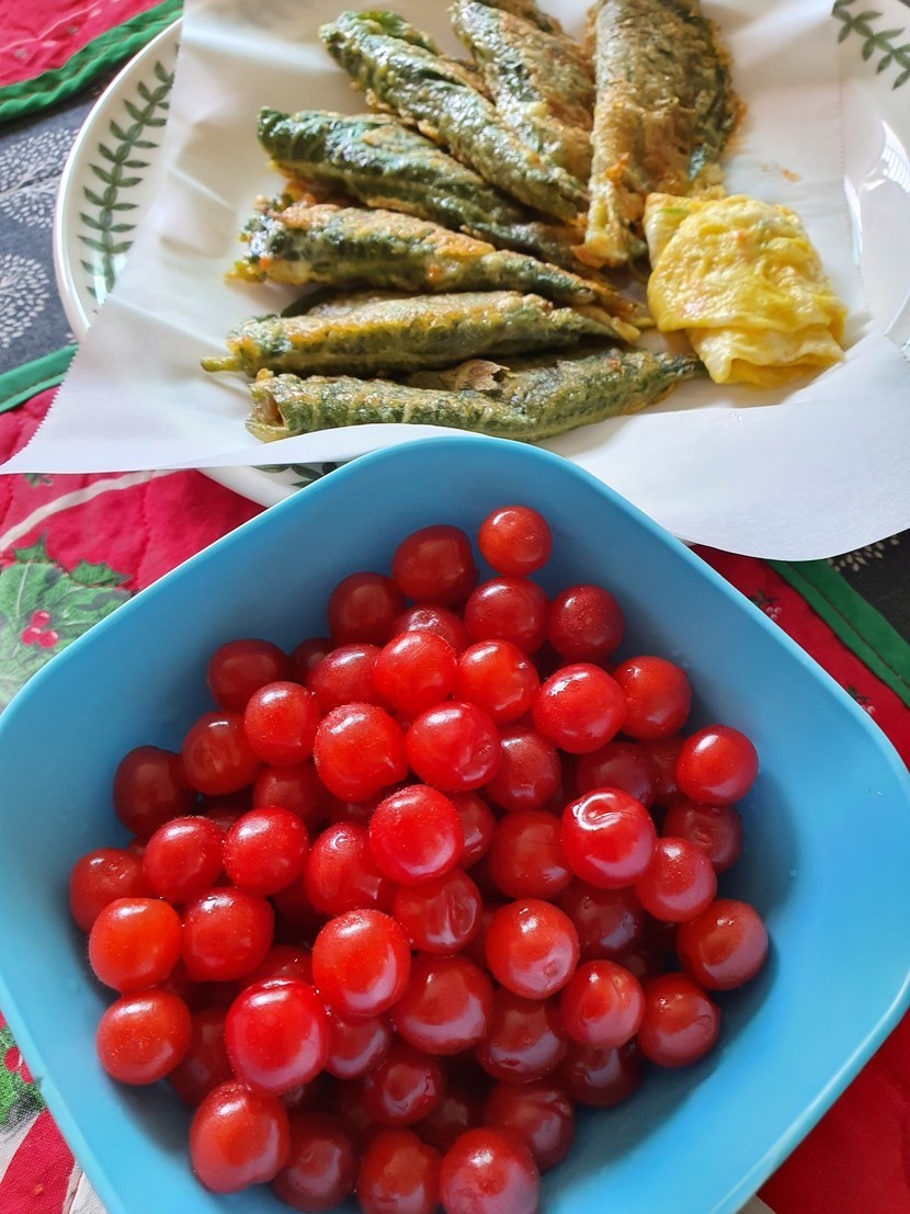 21.06.02 479 읽음 앵두랑 깻잎전~ acasia6854 구독하기 9 10 콘텐츠의 수익 5 옆 건물 집 마당에 앵두나무가 빨갛게 꽃이 핀것처럼 앵두가 다래다래 열렸는데 우리집양반이 한봉다리 따 왔네요 깻잎전 옆에 놓으니까 돋보이는 앵두 10 0 / 300 입력