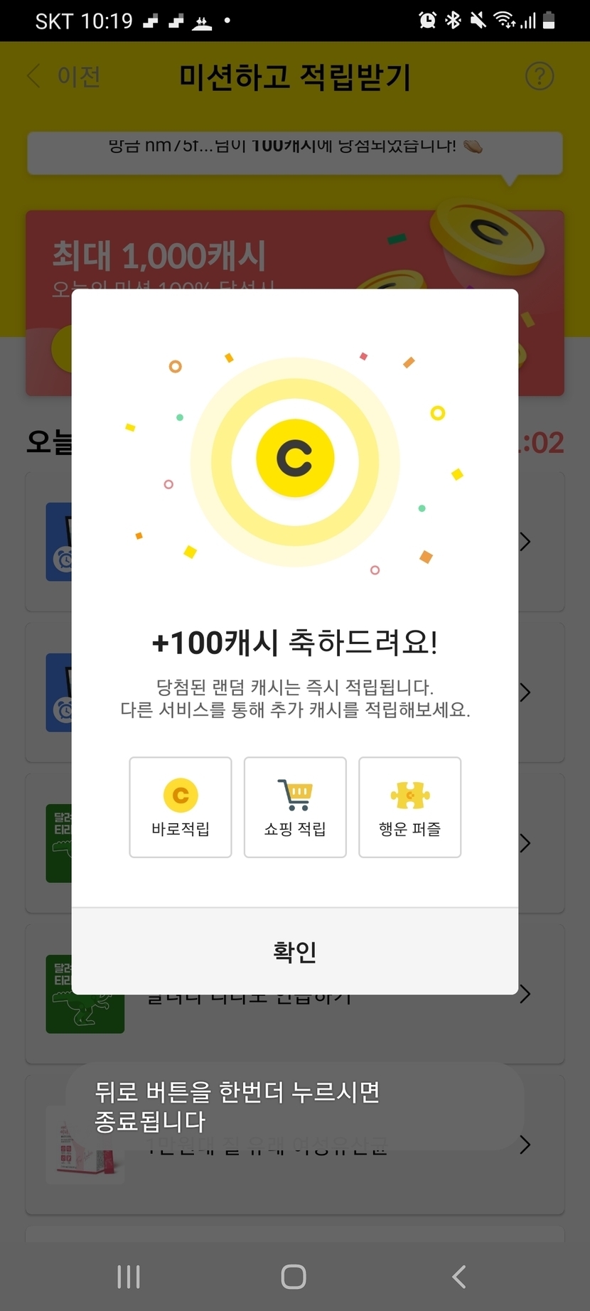 6월1일자 늦은 더블 100캐시 당첨 자랑