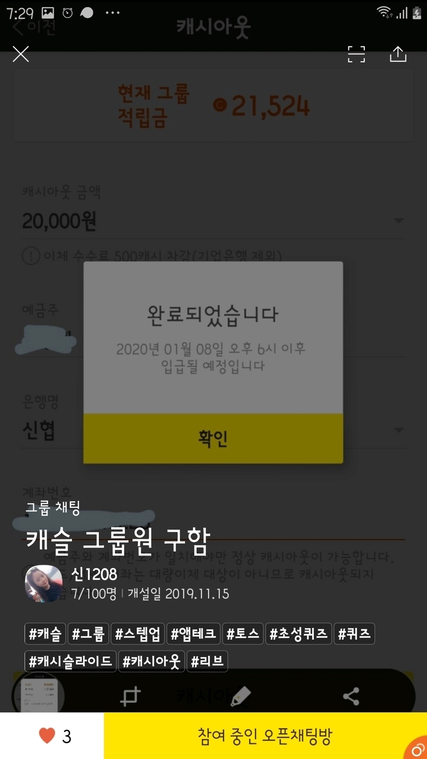 캐시슬라이드 그룹원 구합니다