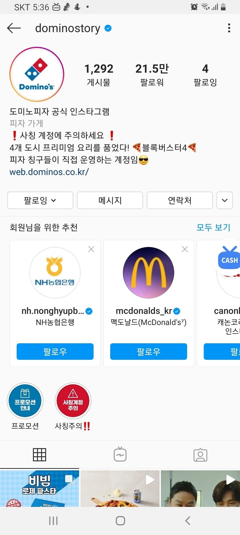 도미노피자 팔로우 100캐시