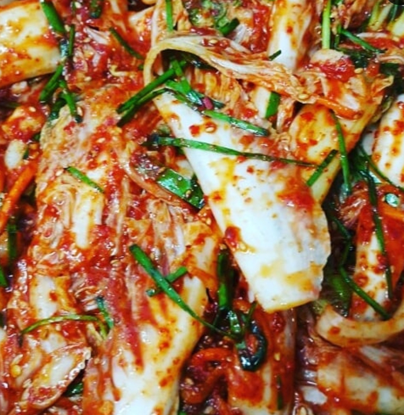 하얀 쌀밥에 김치올려서 밥한글 뚝딱하세요.