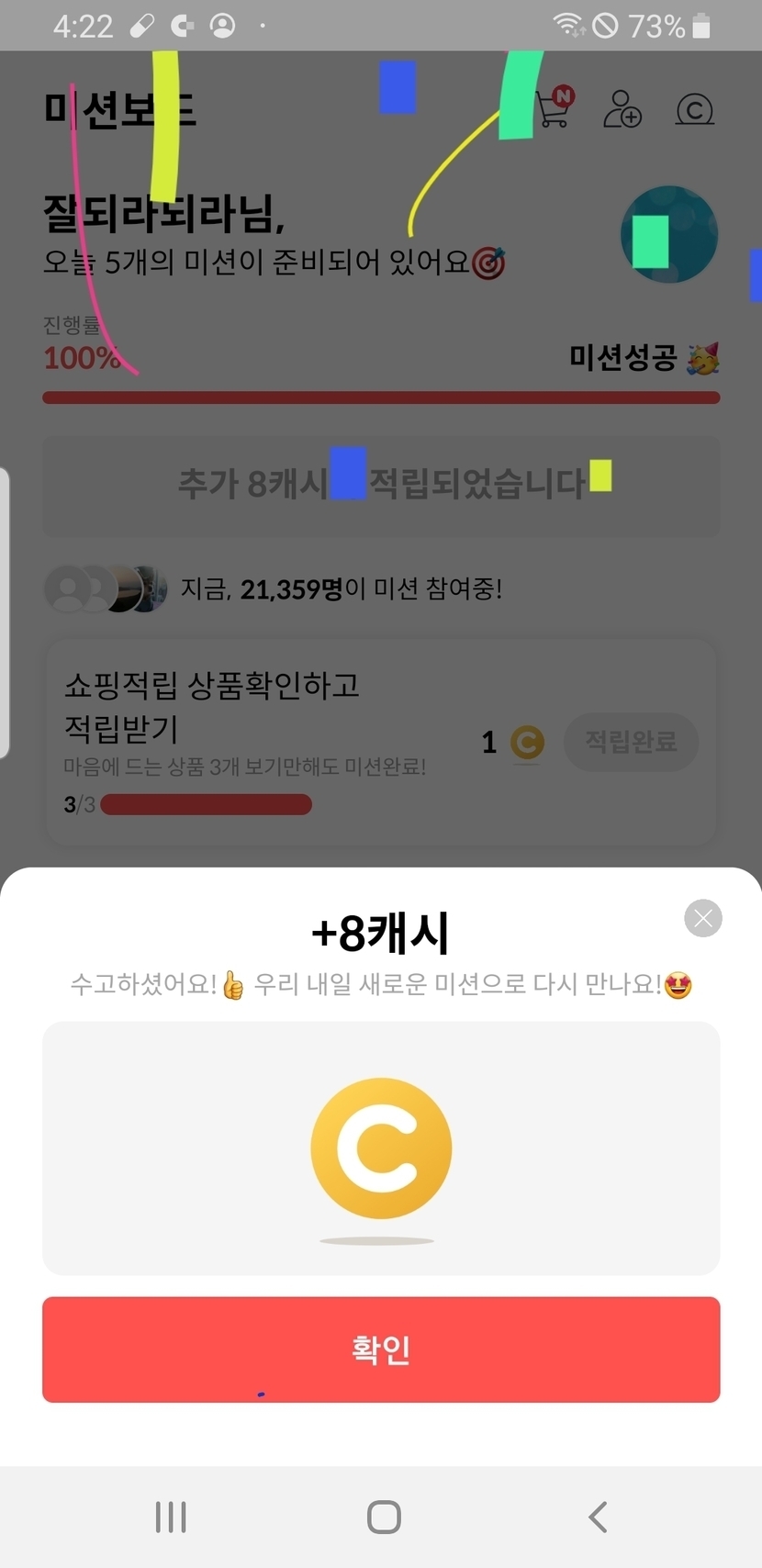 미션성공하고 8캐시 받았어요 ^^