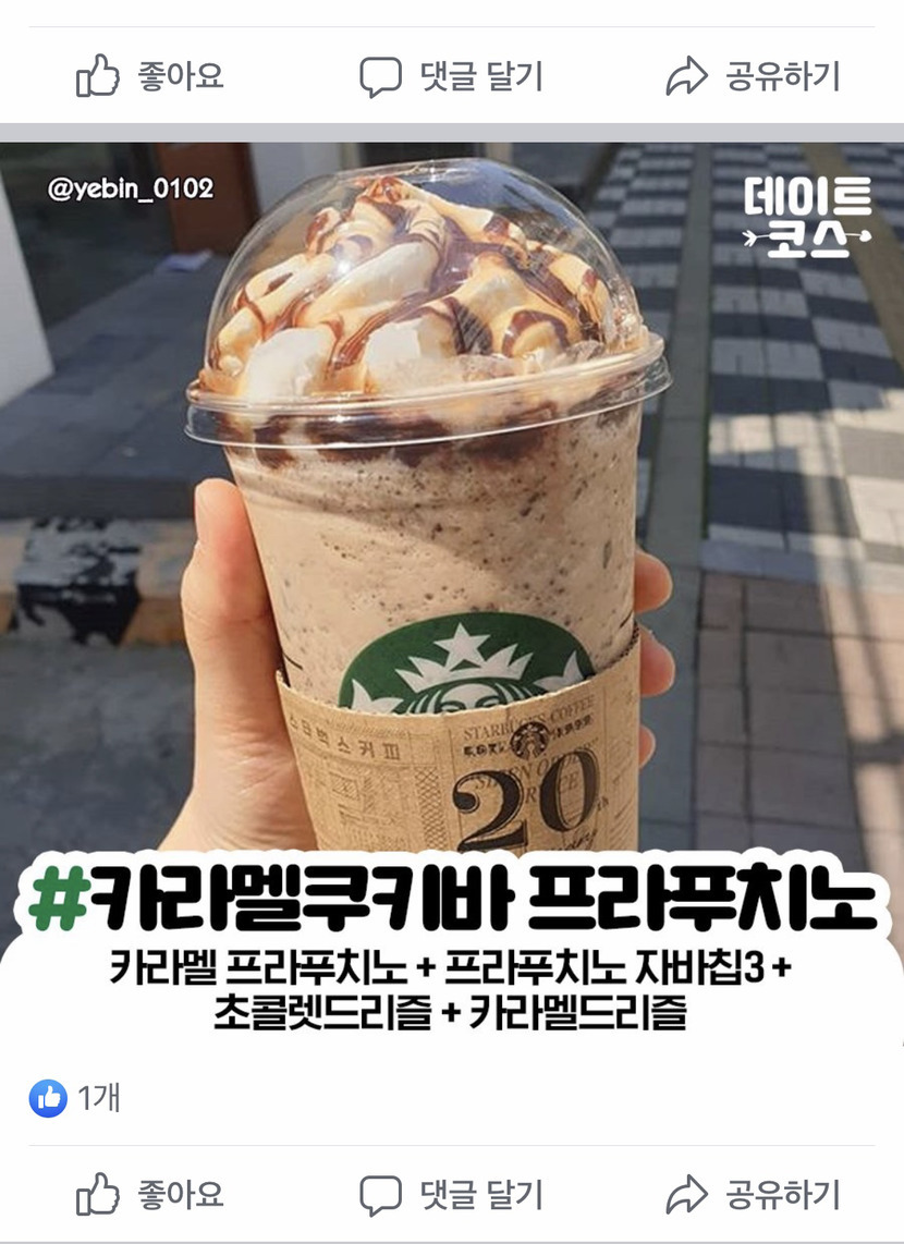 20.01.10 238 읽음 스타벅스 카라멜쿠키바 프라푸치노 샤인머스켓발가락 구독하기 2 7 콘텐츠의 수익 26 페이스북 보다가 나온 스타벅스메뉴 따라해서 먹었는데... 진짜 맛있네요!!!!굿굿!!!메뉴는 이대로 보여 드렸어요!! ㅋㅋㅋㅋ 7 0 / 300 입력