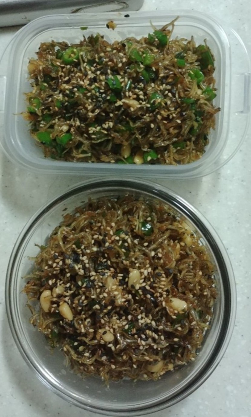 그다음 썰어놓은 청양고추를 조금 넣어 휙휙 볶으면 맛있는 청양멸치볶음 먼저 완성!!!