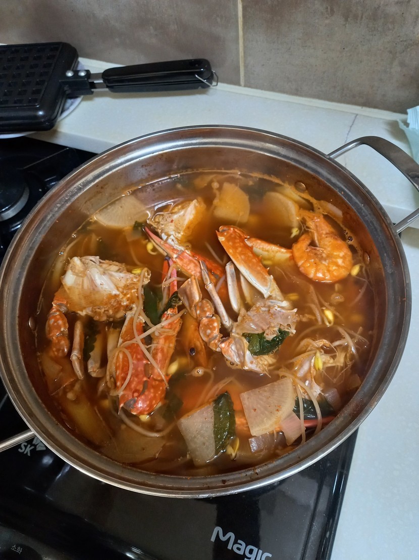활꽃게 사다 끓였어요.맛있네요.살이 꽉찬