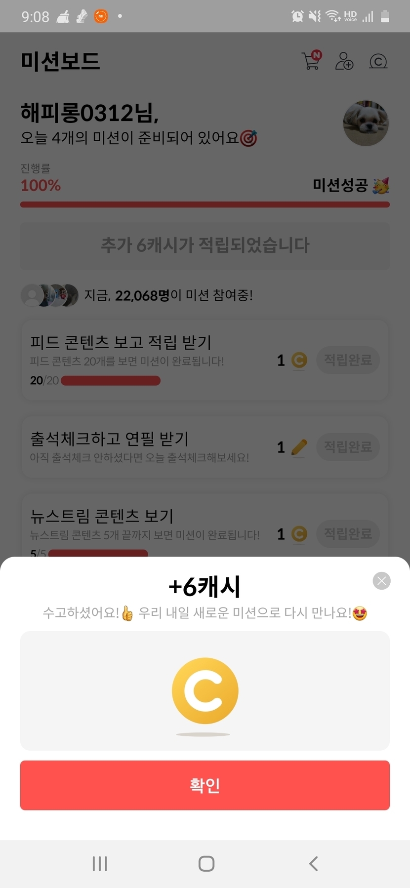21.09.02 95 읽음 미션완료_9/2 해피롱0312 구독하기 2 2 콘텐츠의 수익 1 미션완료 후 바로 수정 합니다. 캐친 여러분 밤공기가 상당히 차가워 졌습니다. 건강관리 유의하시길 바랍니다. 편안 밤 보내시길 바랍니다. ^@^/ 2 0 / 300 입력