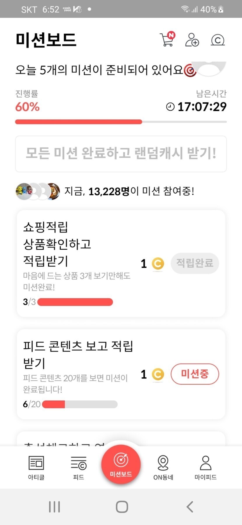 지금시각 06시53분 미션보드~미션 중 인증샷~~