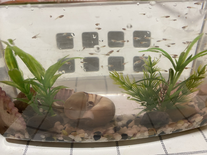 오늘 집을 씻어준다고 보니 새끼 구피가 있기에 어미 구피를 따로 산실처럼 마련해 준답시고 따로 두었다.