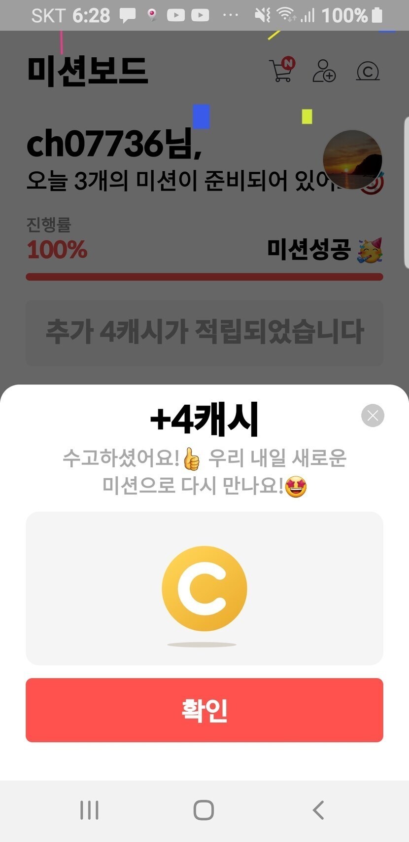 10/20 미션보드 4캐시 적립완료