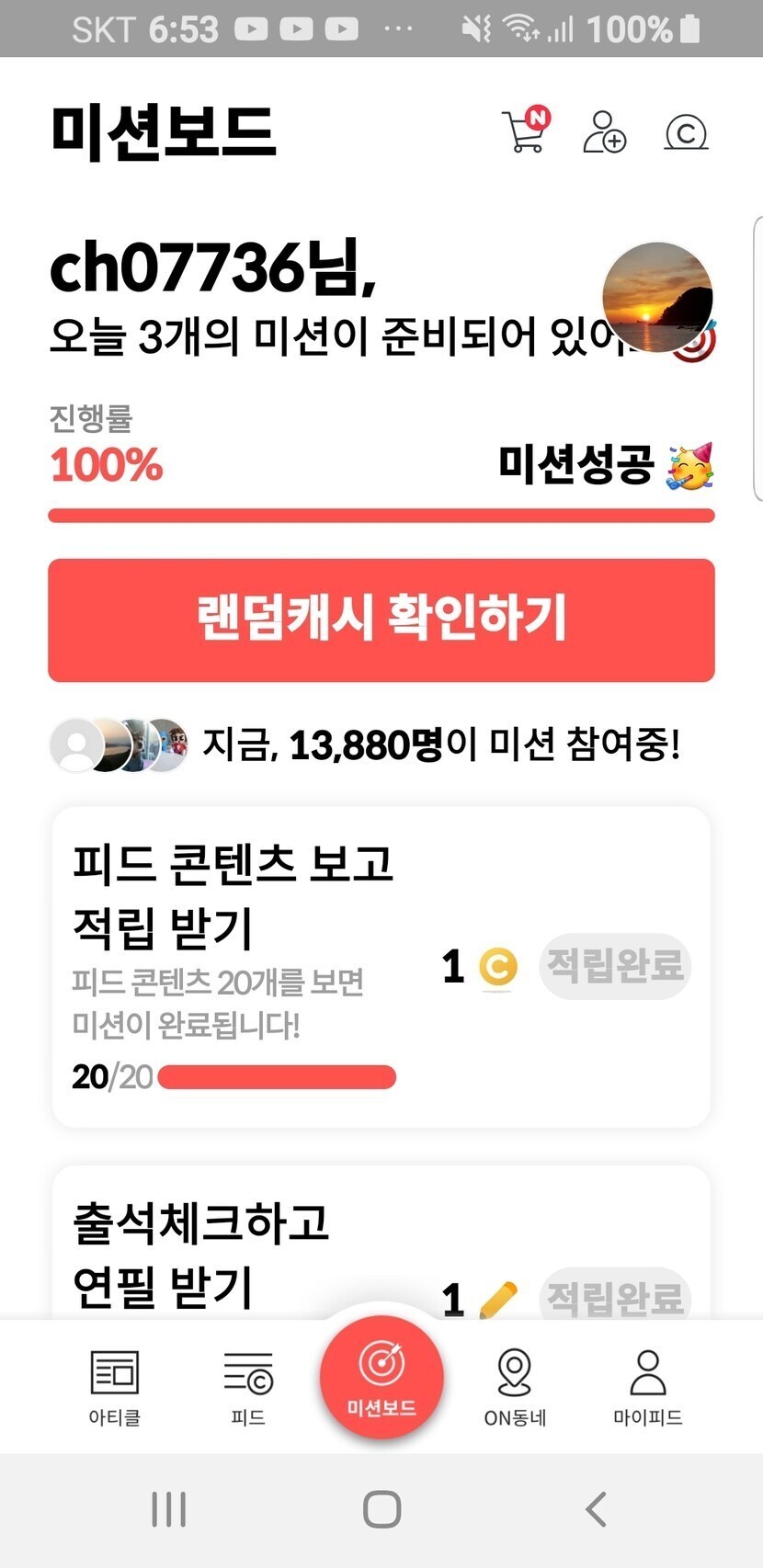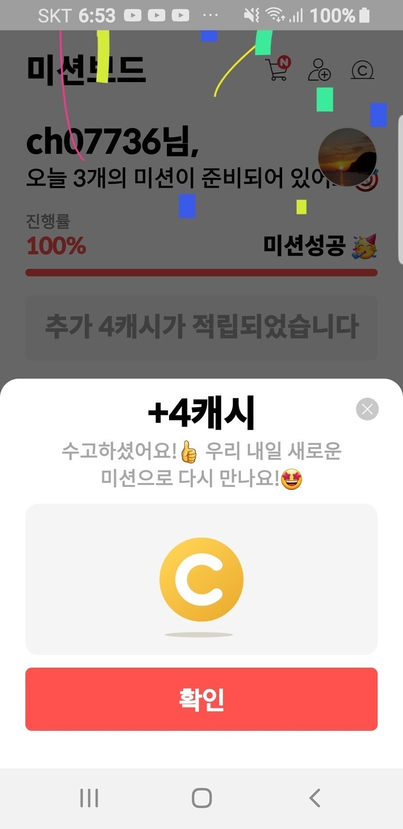 10/25 미션보드 4캐시 적립완료