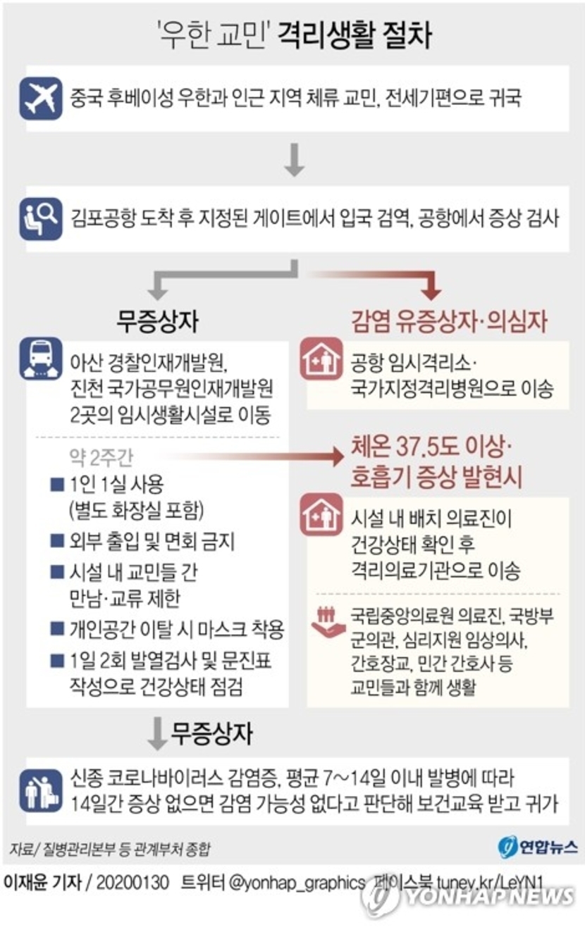 우한교민입국예정~격리생활절차