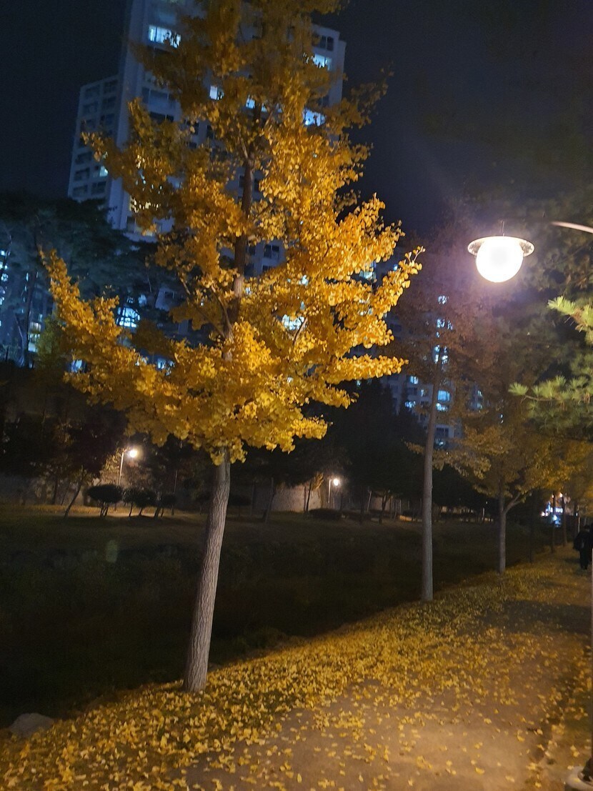 가로등옆 은행나무