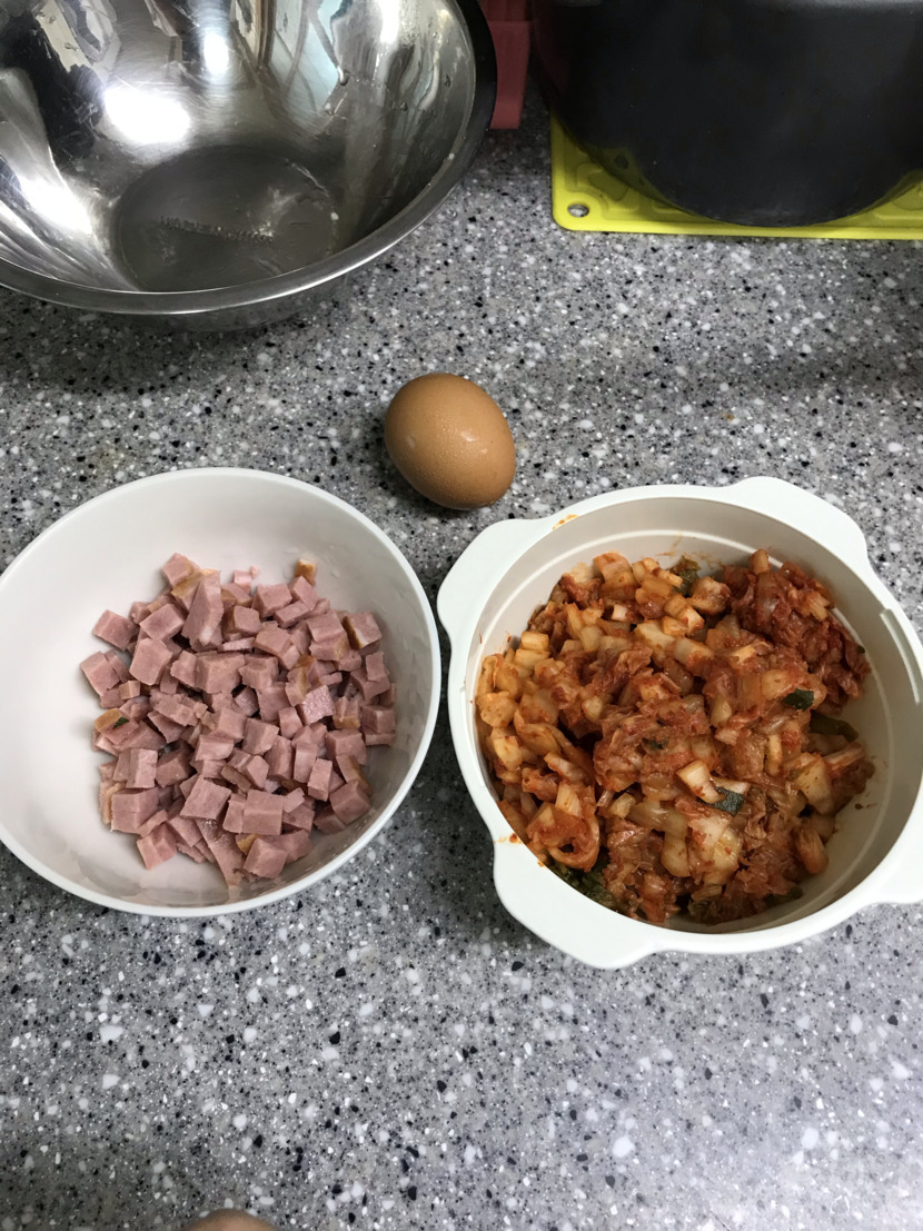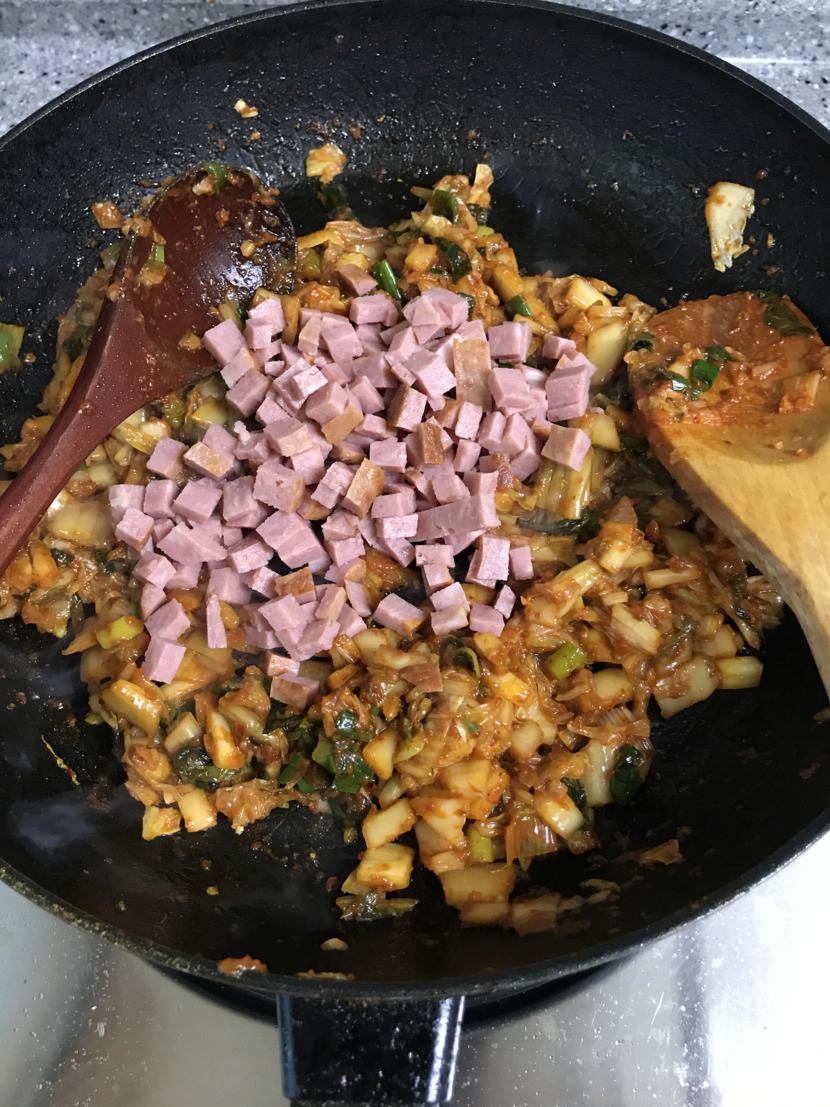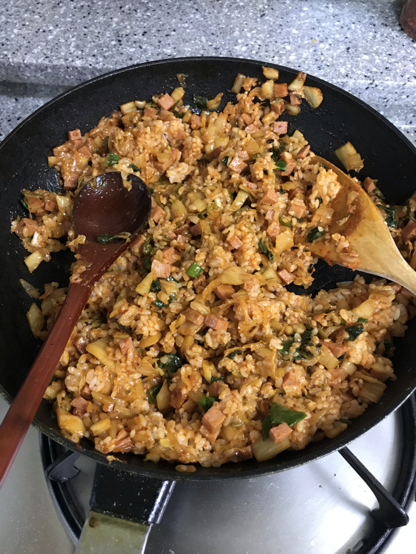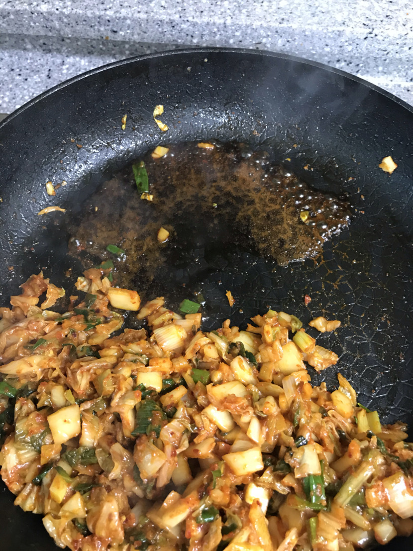 20.02.03 108 읽음 김치볶음밥 iyk7516 구독하기 1 5 콘텐츠의 수익 17 1.재료를 준비하고 먼저 파기름을 낸다2.그리고 파가 노릇해지면 김치를 넣고 볶는다.3.김치가 볶아지면 한쪽으로 몰고 간장 한숟가락을 넣고 눌린다 4.그리고 김치랑 같이 섞는다 그리고 햄을 넣고 볶다 불끄고식은밥 넣고 잘비벼준뒤 불켜고 다시볶는다 5마지막으로 굴소스 아주 약간 넣어 볶고 불끄면 완성마지막으로 계란후라이나 계란국으로 같이 먹으면 꿀맛 5 0 / 300 입력