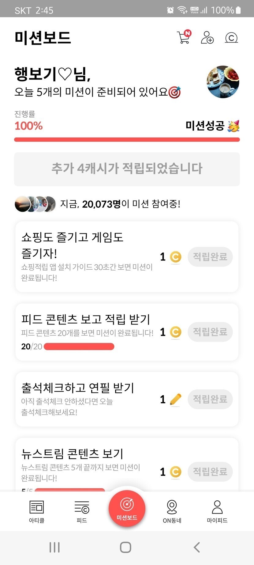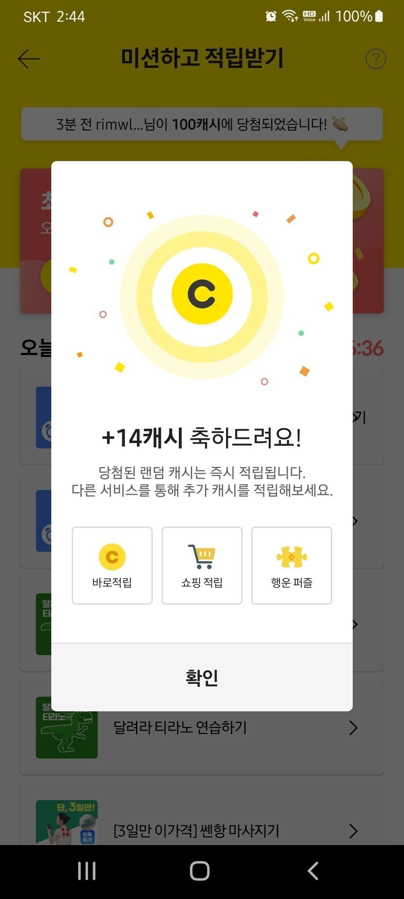 캐시슬라이드 미션 완료