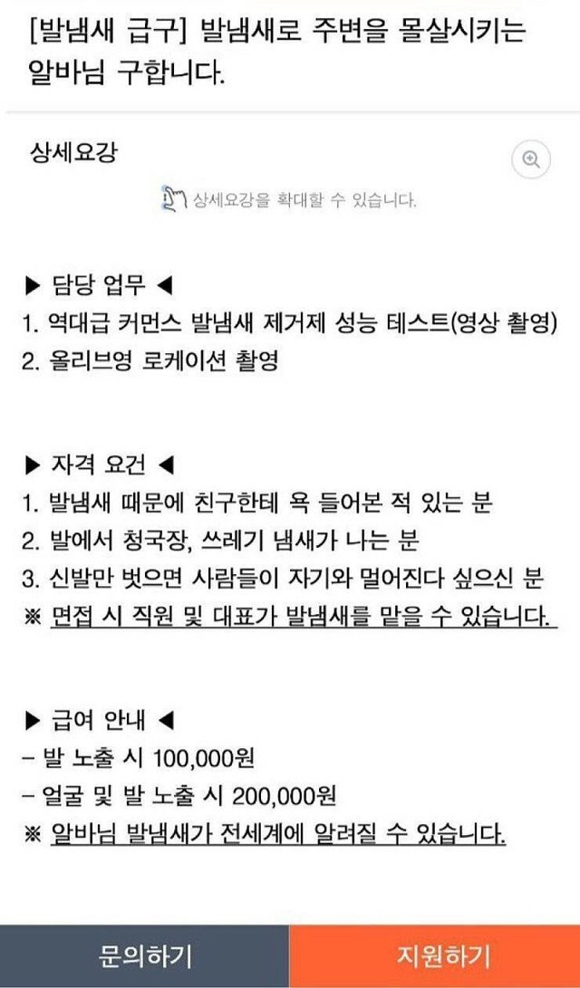 발냄새 알바 구합니다