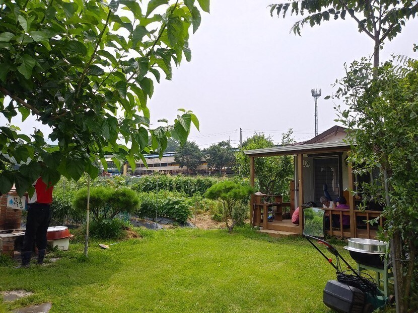 어느 시골집 앞에서 보는 밖의 풍경