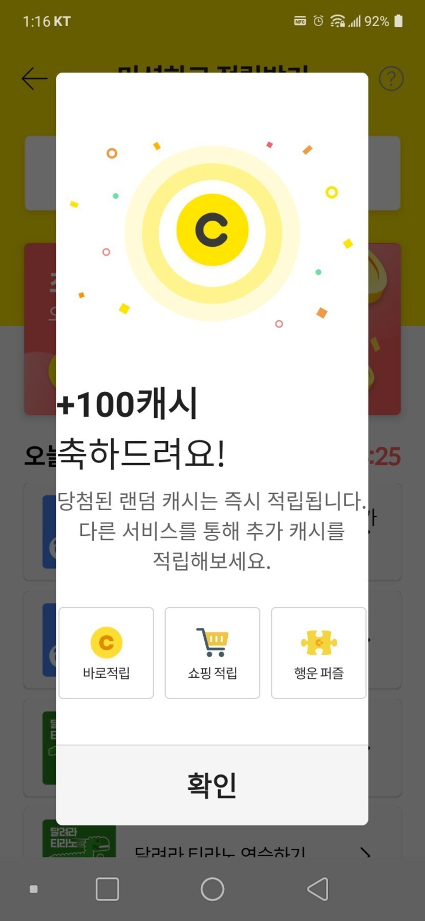 오랜만에 100캐시 당첨!