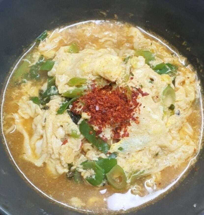 국물에 계란물을 빙 둘러 붓기.