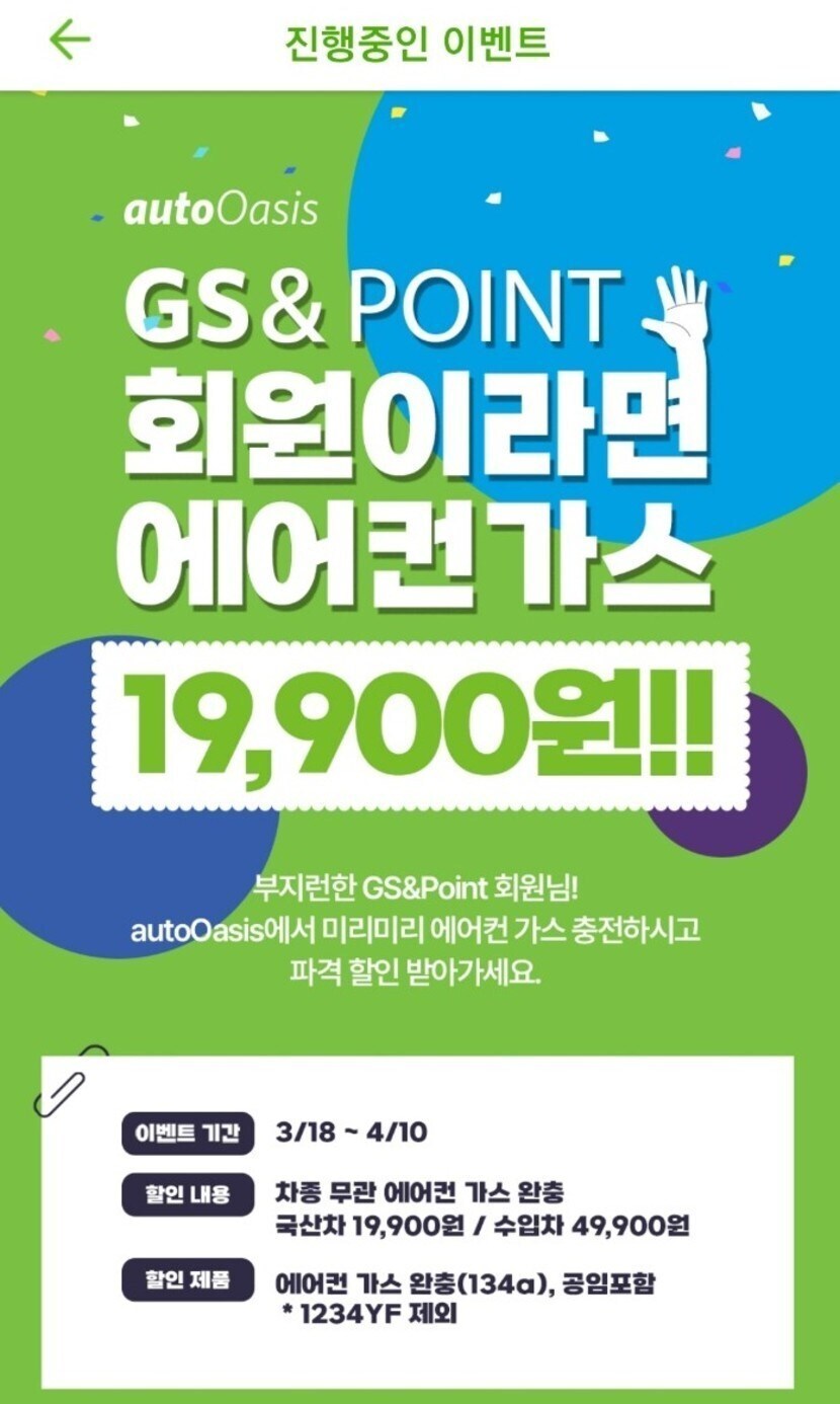 GS&POINT + GS 오토오아시스에서 3/18 ~ 4/10 까지