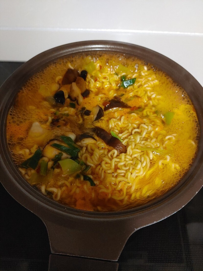 ๋ผ๋ฉด ๋์ด๋ผ์ ์ด๋ผ๋ฉด 2๊ฐ ๋ฒ์ฏ ๋ฃ๊ณ ๋์ด๊ณ ์