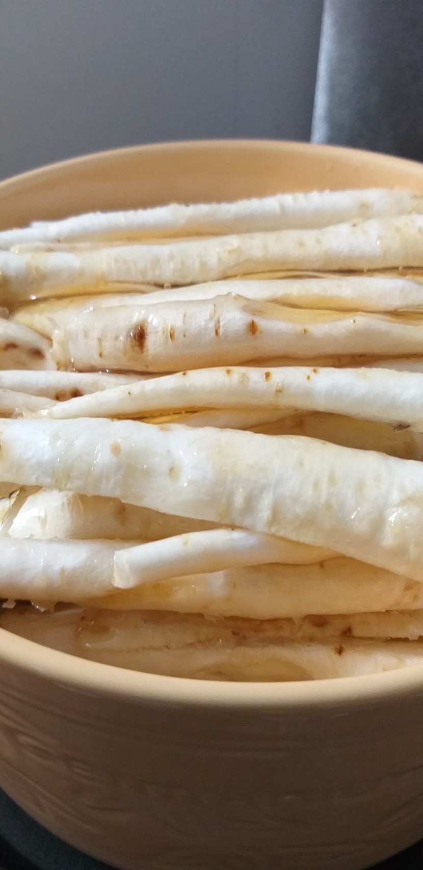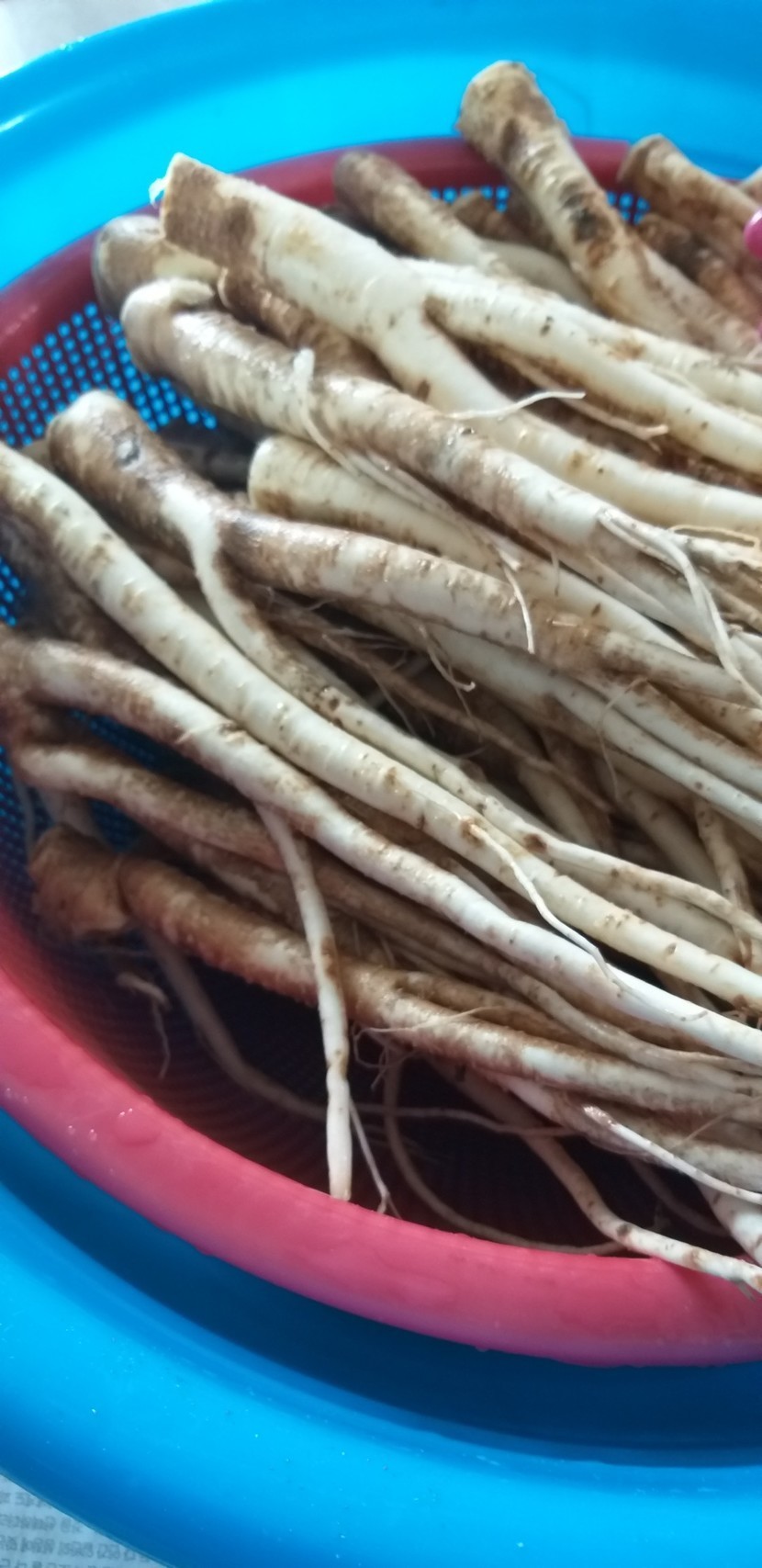 다 하게 되더라고요 껍질벗긴 도라지 다시한번 씻어서 소쿠리에 받쳐 물기를 빼 주시고