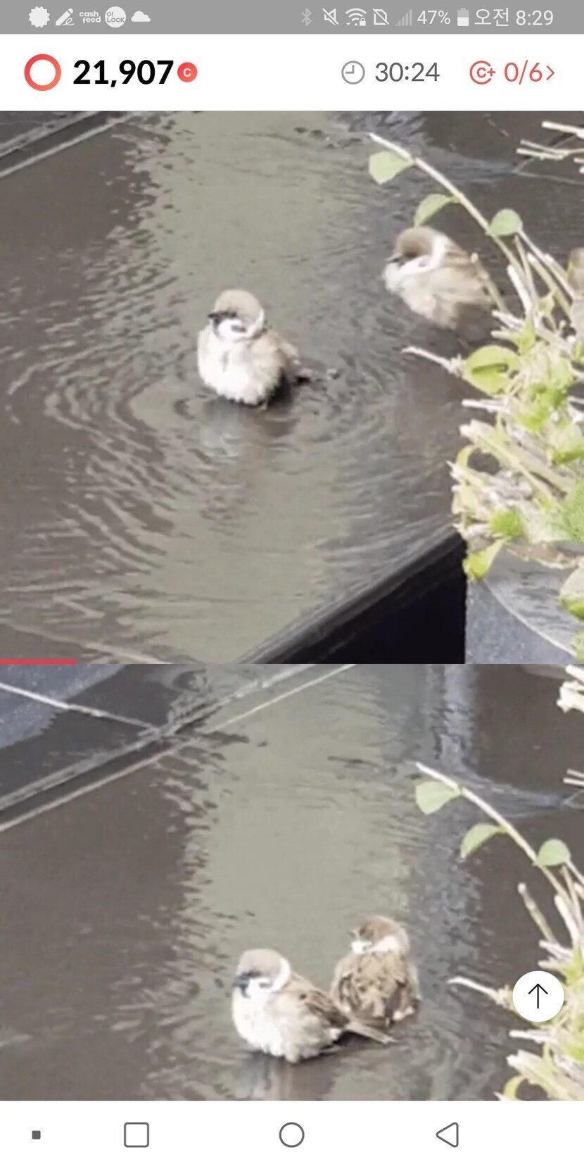 참새한쌍이 즐겁게 물놀이로 사랑을 하네요