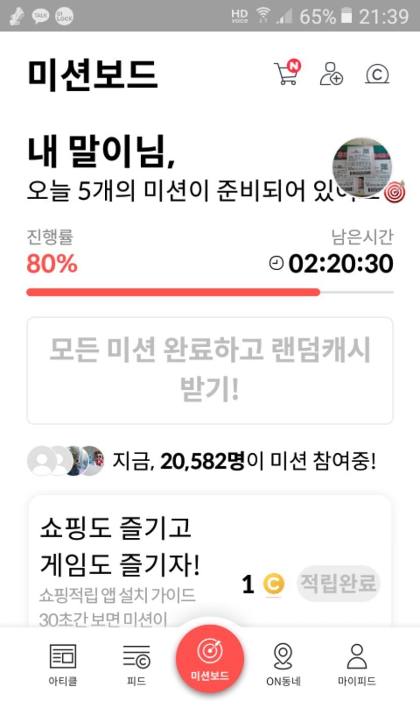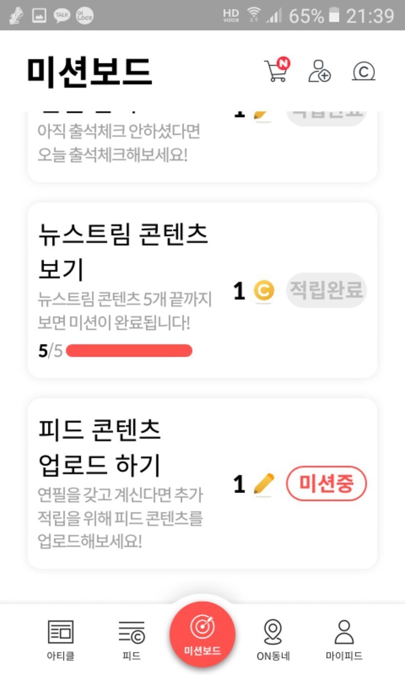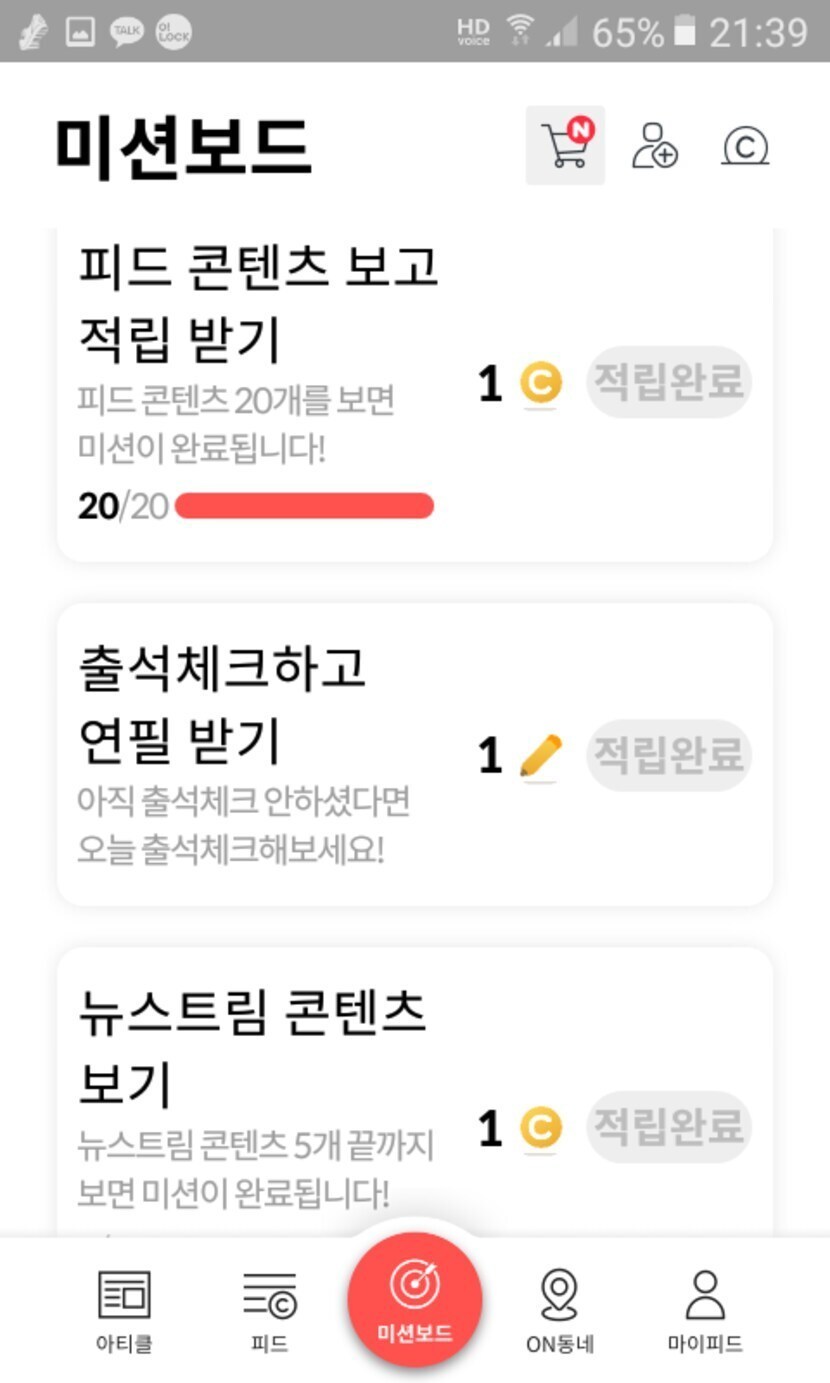 미션보드 적립중