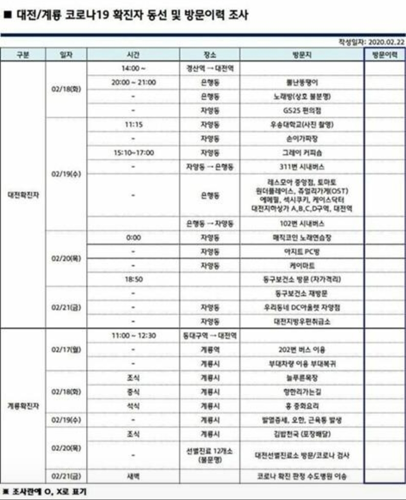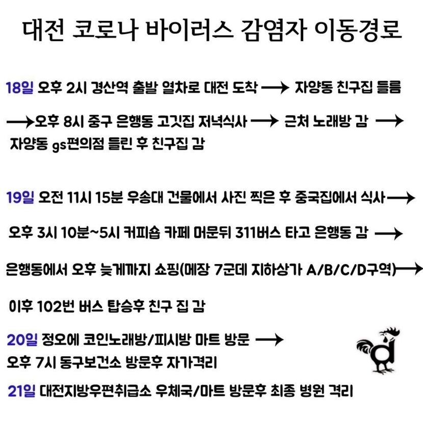 대전 코로나 감연자 이동경로