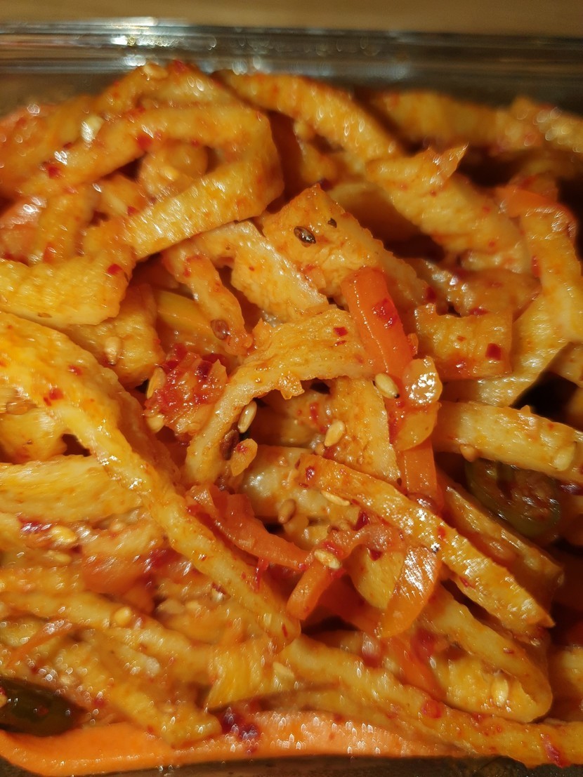 20.02.27 306 읽음 색다른 어묵볶음 mndjaak 구독하기 0 34 콘텐츠의 수익 40 코로나19지역사회 전염으로 마트도 맘편하게 가기힘드네요 냉장고 털기로 어묵볶음을 했어요 어묵을 길고 얇게 채썰어요양념은 끓여서 볶을건데요올리고당 간장 식용유 고추가루 마늘을 끓인후 채썬어묵과 당근을 넣고 볶아주고 마지막에 참기름과 통깨를 뿌려주세요 34 0 / 300 입력