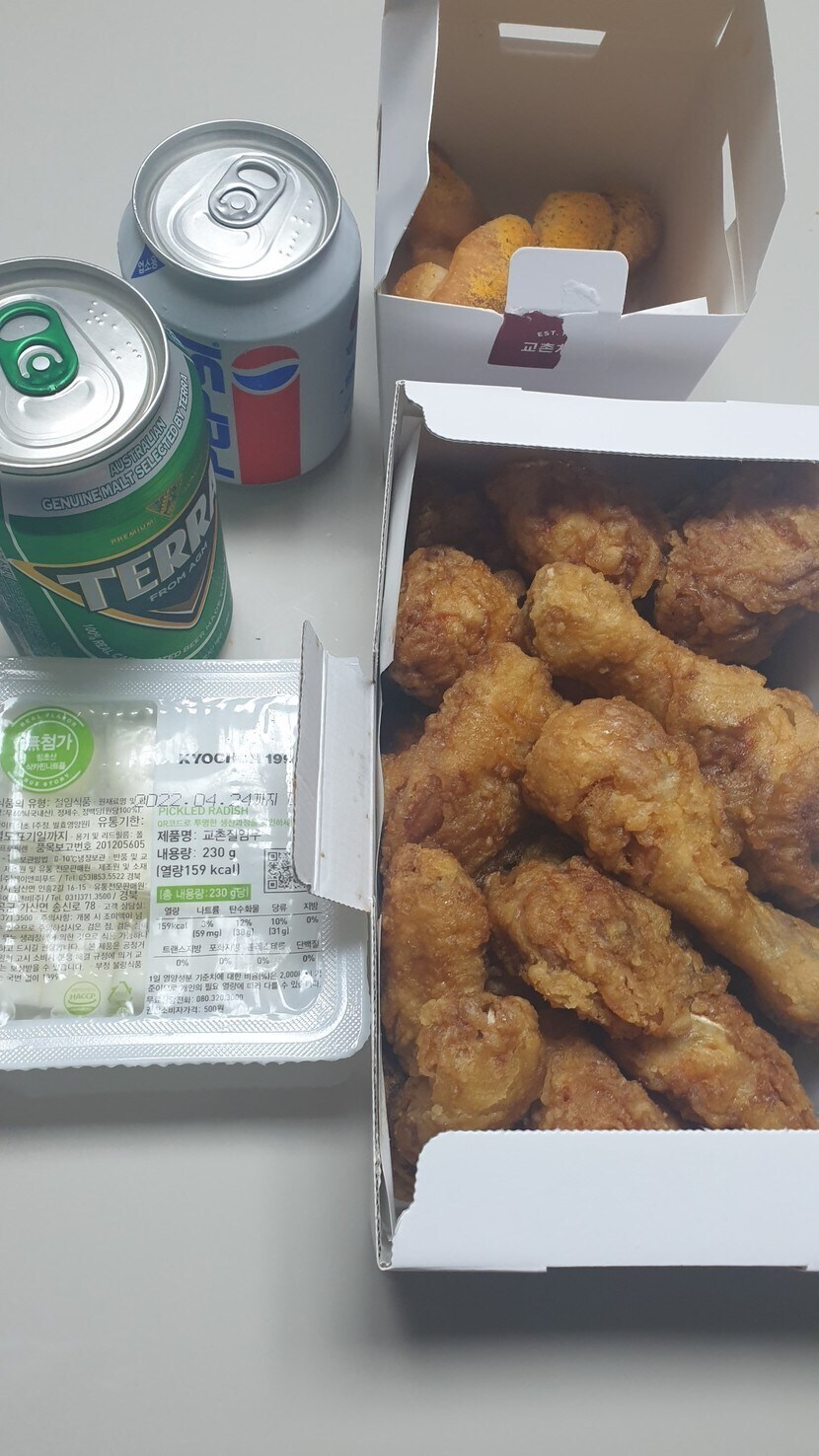 치킨 맥주 꽈배기 콜라