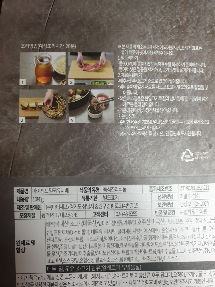오늘은 마이쉐프 밀페유나베..