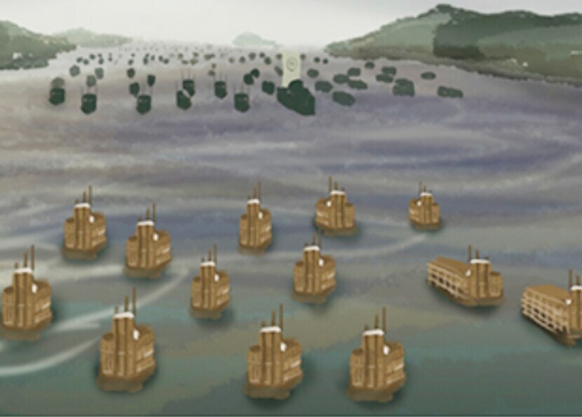 한산도 앞바다에서 이순신 장군과