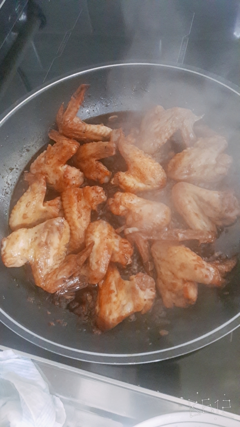 반복해준다~그리고 노릇노릇해진 닭날개를 꺼낸후