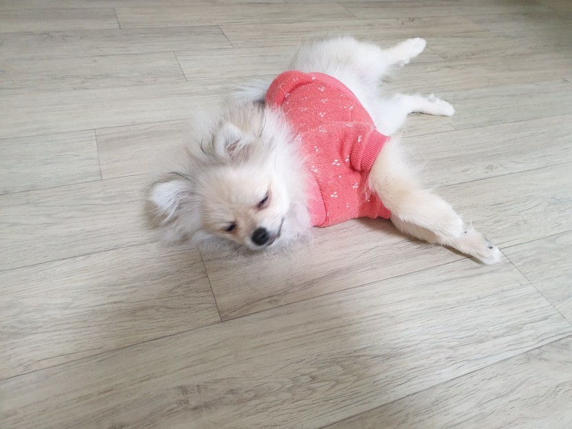 난생처음 옷입은 또치 벗겨달라 발버둥