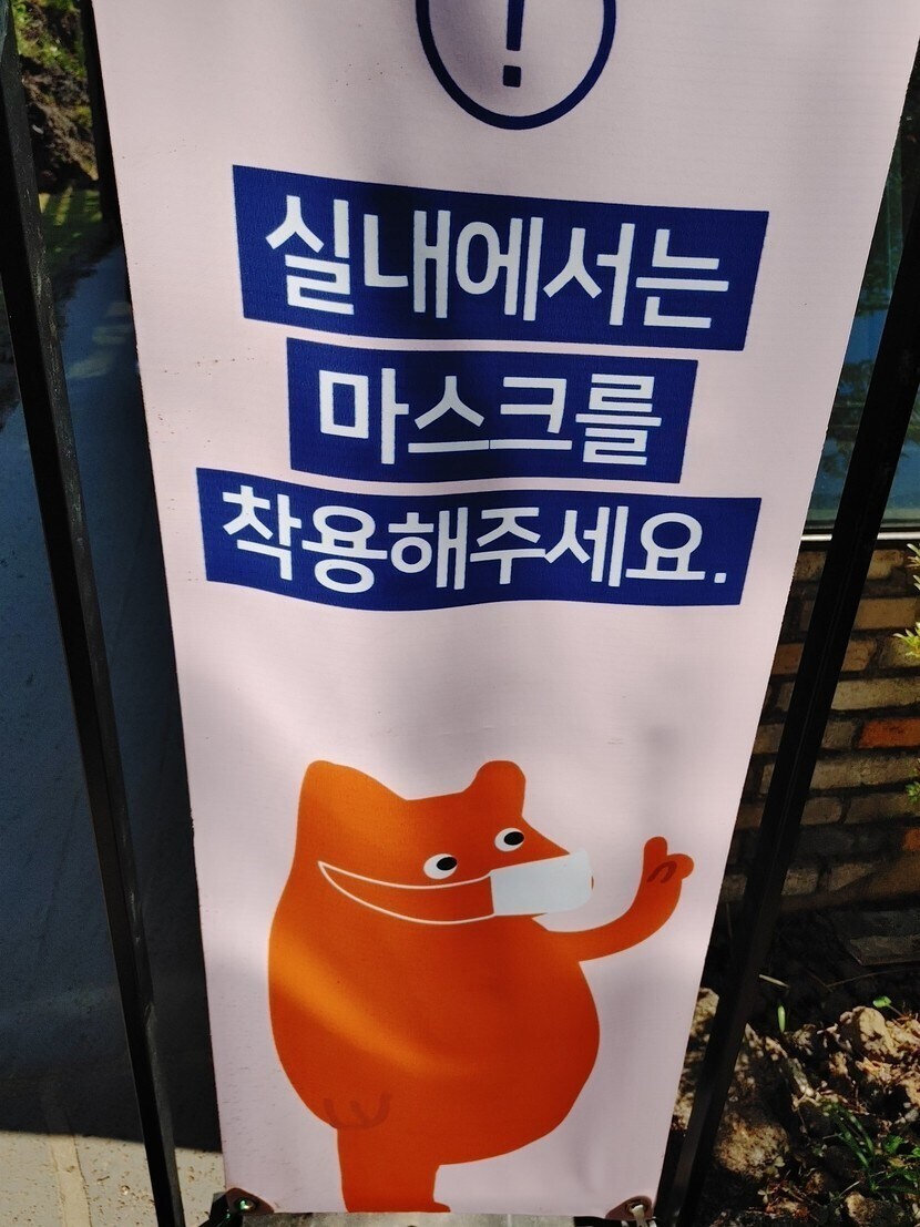 그러다가 실내카페를 찾아서 부착하였습니다 실내에서는 마스크를 체험이라고 적혀 있습니다 원래부터 끼고 있어서 들어갔더니 여러 풍경들이 있더라고요 앉을 의자거나 사진을 찍을 만한게 있더라고요