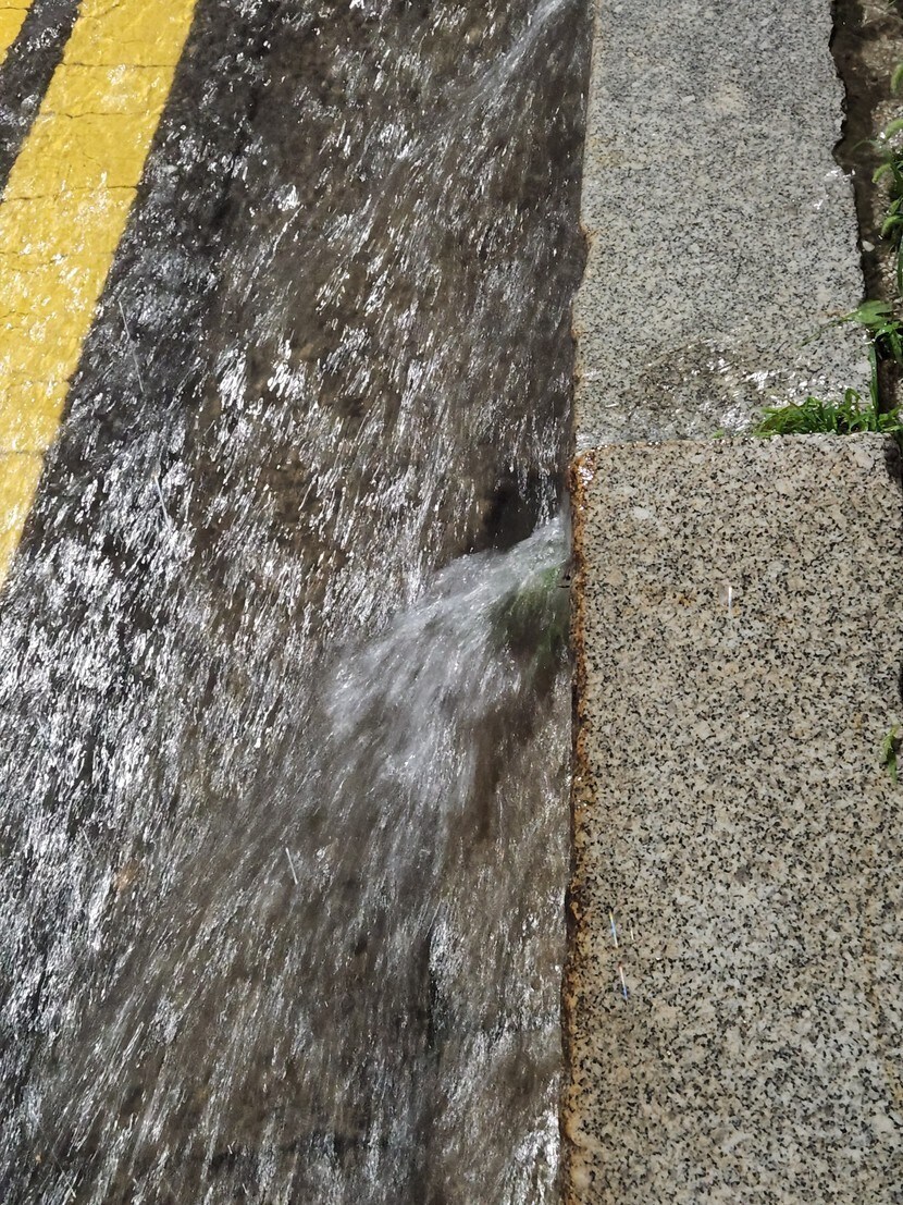 단지의 길에 흐르는 빗물이