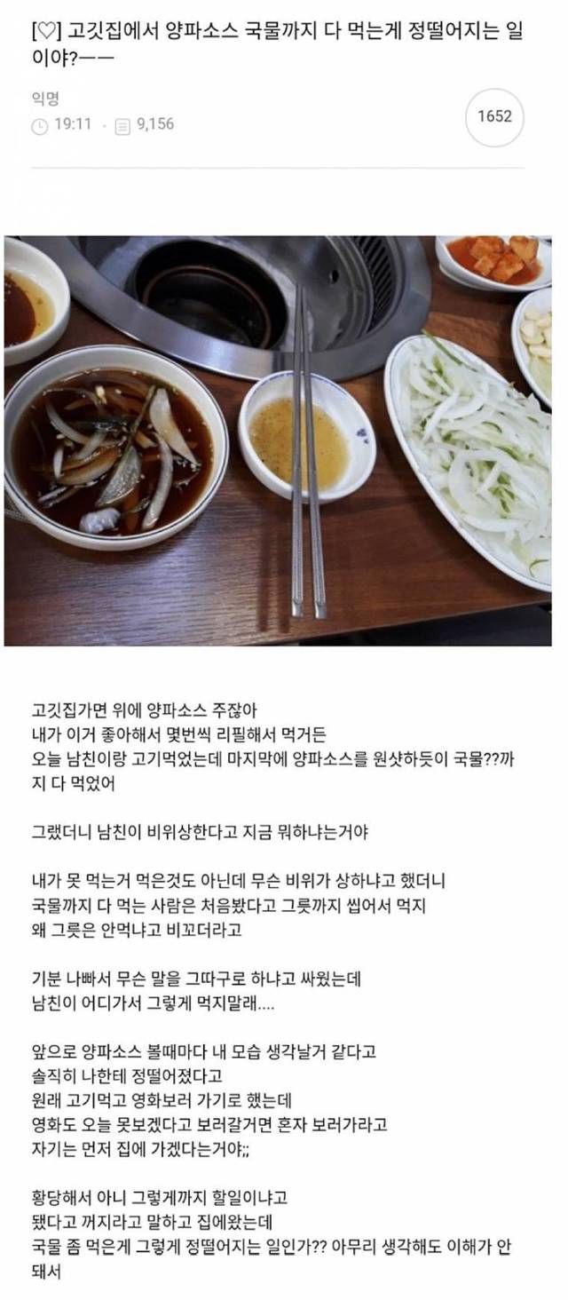고깃집 양파소스 원샷 논란