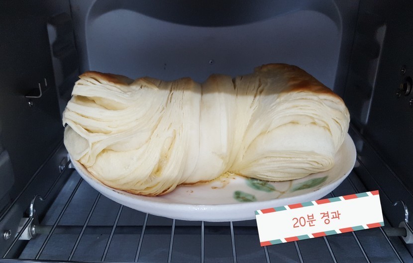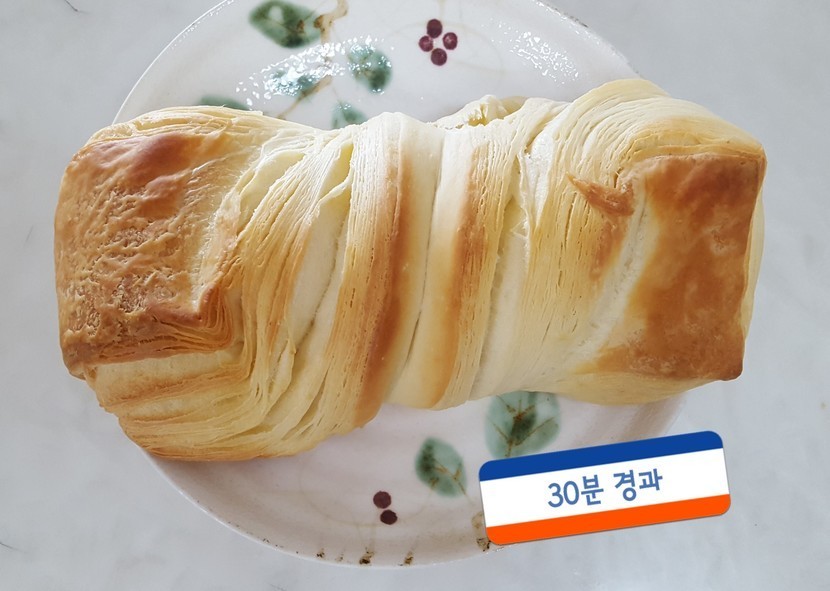 180도로 맞춘 오븐에 30분간 굽습니다. 혹시 탈까봐 10분 간격으로 체크하는 소심함^^;; 10분 후 겉바삭 속 촉촉한 데니쉬 식빵 완성~ 버터향 솔솔 풍기며 굽히더니 맛도 합격입니다. 아이들이 맛있다며 감탄하며 먹었어요.
