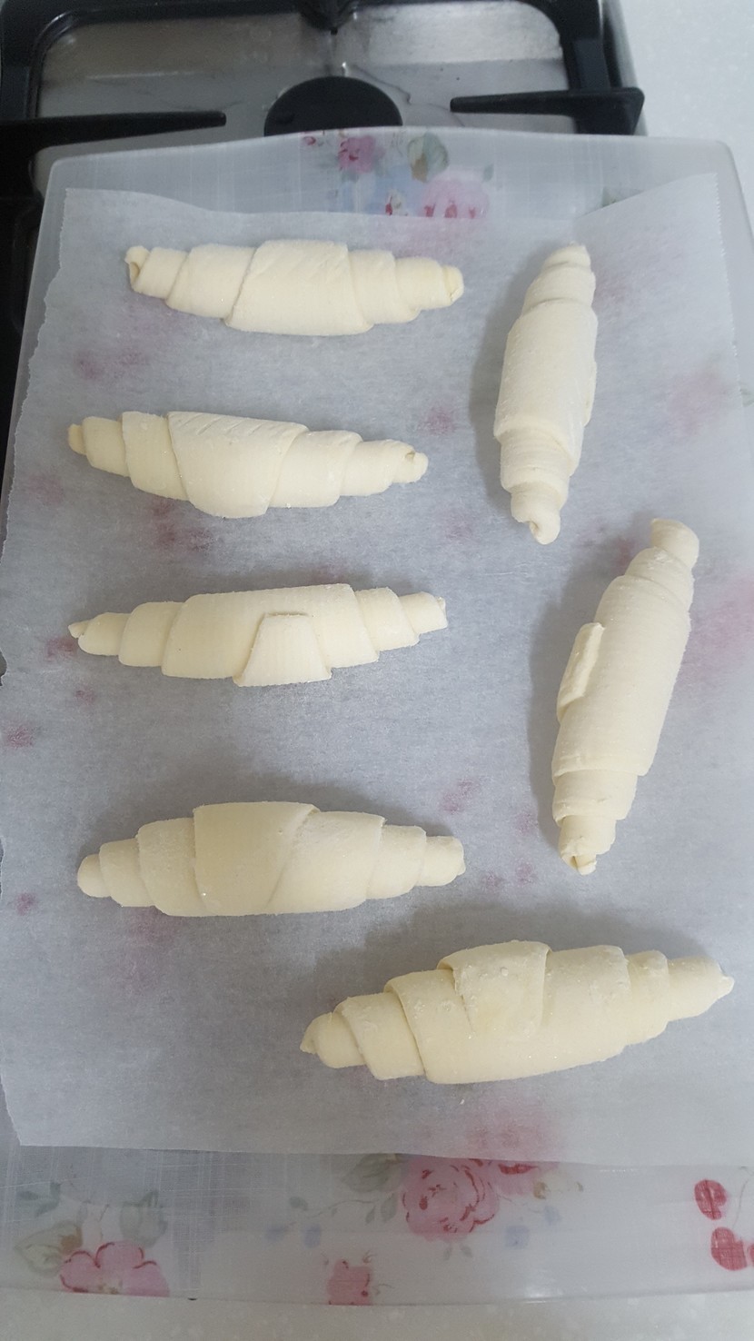 이틀 뒤 아이들이 또 생지 타령을 해서 이번에는 잘라서 구워 보았습니다. 바삭함을 배가시키고 굽는 시간을 단축시키기 위해... 결론은 있는 그대로 구워 먹어라~ 바삭함이 지나치고 촉촉함은 그만큼 사라졌어요. 버터향도 어디론가 실종...
