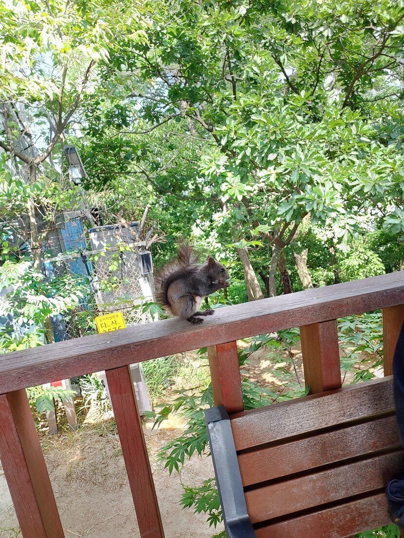 청솔모가 사람을 잘따라요 신기하네요
