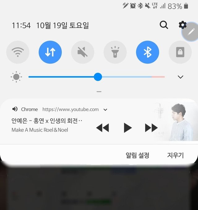 그러면 상단바를 내려서 노래 재생을 누른다!