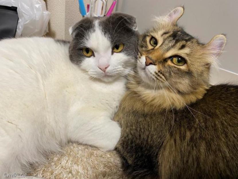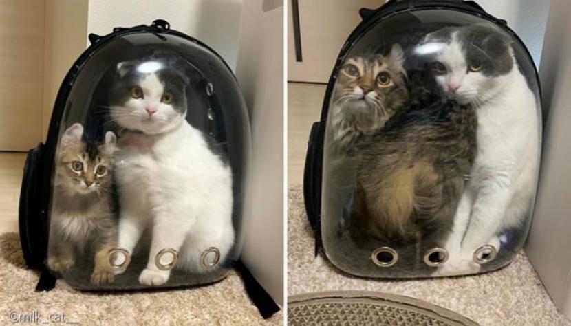 'milk_cat__'는 "가방을 은신처처럼 쓸 수 있도록 구석에 놓았는데 둘이 함께 들어가 있기에 사진으로 남겨봤다"며 "불편할 법도 한데 꼭 붙어 있는 모습이 너무 귀여웠다"고 말했다.