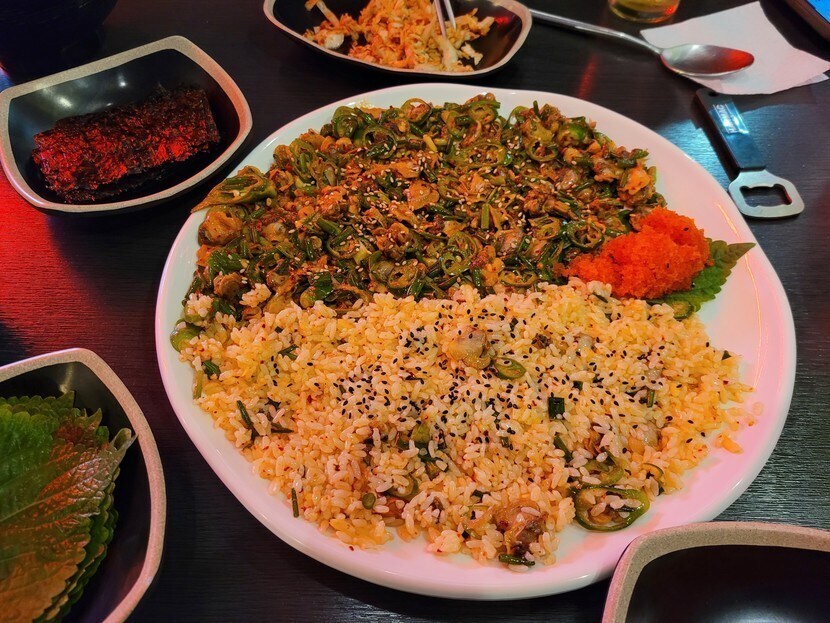 김도 따로 나오는데 김이랑 깻잎에 볶음밥이랑 꼬막무침과 날치알까지 올려 싸먹으니 바로 순삭해버림ㅎㅎ