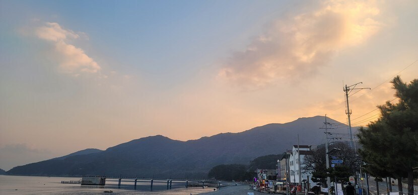 하루가 저물어가는 바닷가의 노을