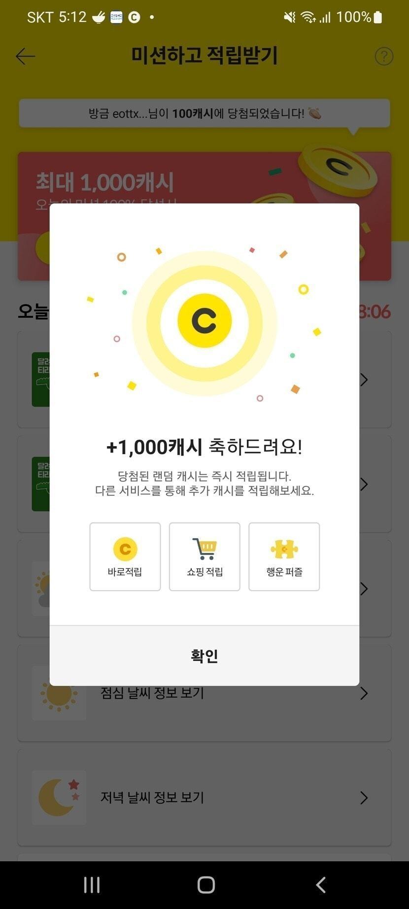 1000캐시 대박 ㅋ 모두 대박나세요^^