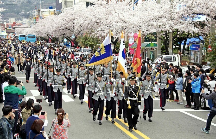 그래서인지 해군사관학교, 해군진해기지사령부, 미해군진해부대 등 군부대가 행사 중 대중에게 개방되고 군악의장대 공연이 아주 특별한 볼거리인 축제이죠.