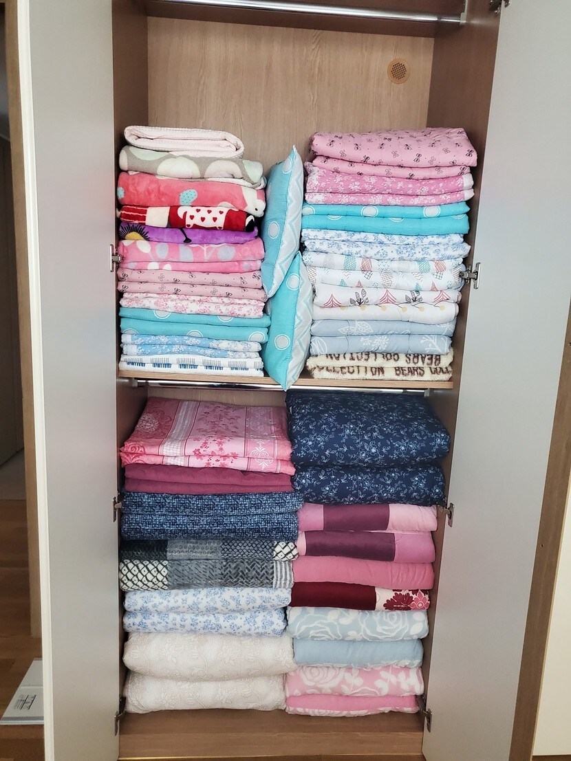 이불정리해봤어요.