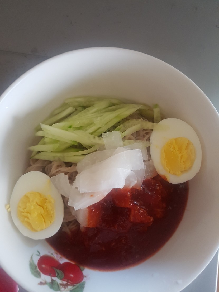 20.04.02 383 읽음 냠냠 점심시간😋 비빔 냉면 희야1113 구독하기 4 19 콘텐츠의 수익 53 오늘 점심 매뉴는 생가득 함흥비빔냉면 ㅎ 🍲세끼 중 한번은 면을 먹네요. ㅠ면을 조금더 삶았더니 조금 퍼졌지만 매콤달콤맛나게 먹었습니다.🍳👍👍 즐거운 점심시간 되시고 오늘 하루도 아자아자 화이팅~구성은 면사리, 양념장, 기름장, 무초절임이 있어요여기에 냉면육수 하나 사서 같이 먹으면 좋아요~^^ 19 0 / 300 입력